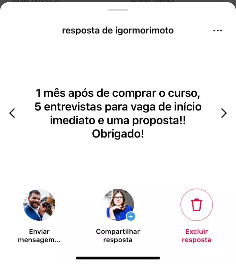 Dá uma olhada em alguns depoimentos que eu recebi: