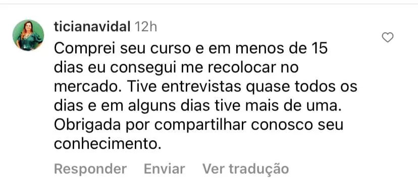 Os meus alunos tiveram o mesmo resultado: saíram de zero entrevistas para até poder escolher onde trabalhar.